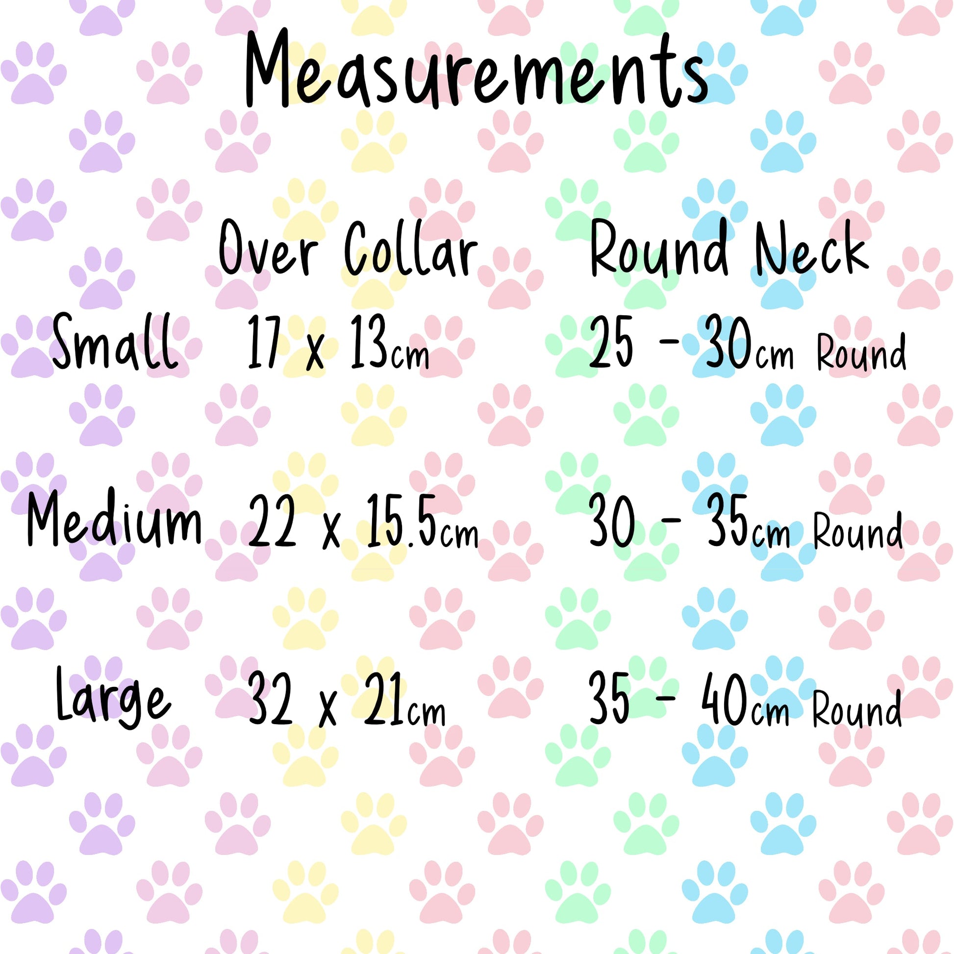 Sizes - Round Neck - Round the neck bandanas are designed to go round your pet's neck and fasten using a hook and loop fastening, for easy release.